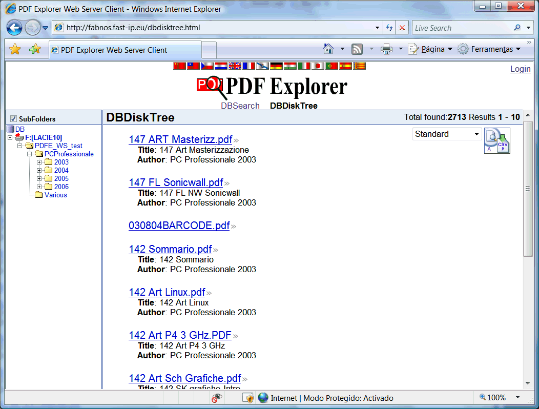 PDF Explorer also includes a Web Server, providing remote access to some of the program functionalities using a simple web browser. We can leave the server running at home and access to our PDFs collection from work office, or vice versa. We can also construct, with this functionality, a server-client schema at our office LAN.